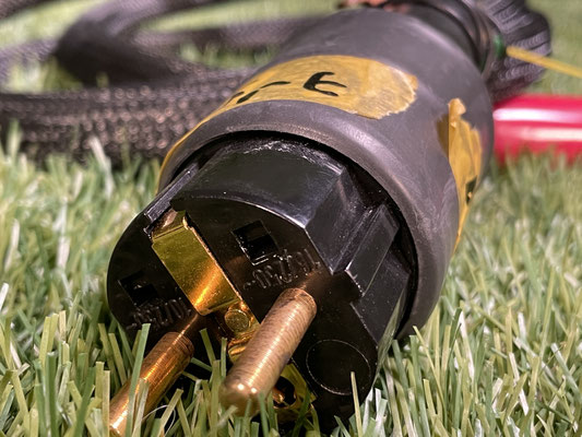 Die Steckverbindungen bestehen aus einem Hospital-Grade Netzstecker der Firma Hubbell auf der einen Seite sowie einem IEC-Stecker von Furutech auf der anderen Seite. Die Kontakte sind nicht gelötet, sondern gecrimpt, um eine bessere Leitfähigkeit und Stabilität der Verbindung zu erreichen. Auffällig ist auch ein separat geführter Erdungsdraht mit Krokodilklemme, der bei Bedarf zum zusätzlichen Erden des angeschlossenen Geräts verwendet werden kann.